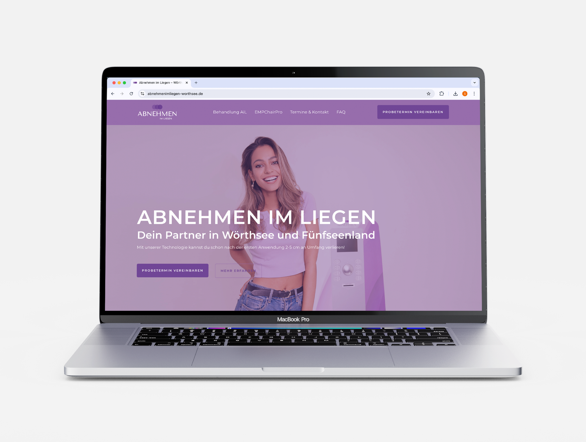 Für ein Studio, das die innovative Behandlung "Abnehmen im Liegen" anbietet, wurde ich mit der Überarbeitung der Webseite beauftragt. Eine besondere Herausforderung bestand darin, dass das Studio zwei unterschiedliche Dienstleistungen mit jeweils eigenem Corporate Design anbietet. Im Grunde genommen handelte es sich um zwei separate Themenwelten, die wir jedoch in einer Webseite zusammenführen wollten.