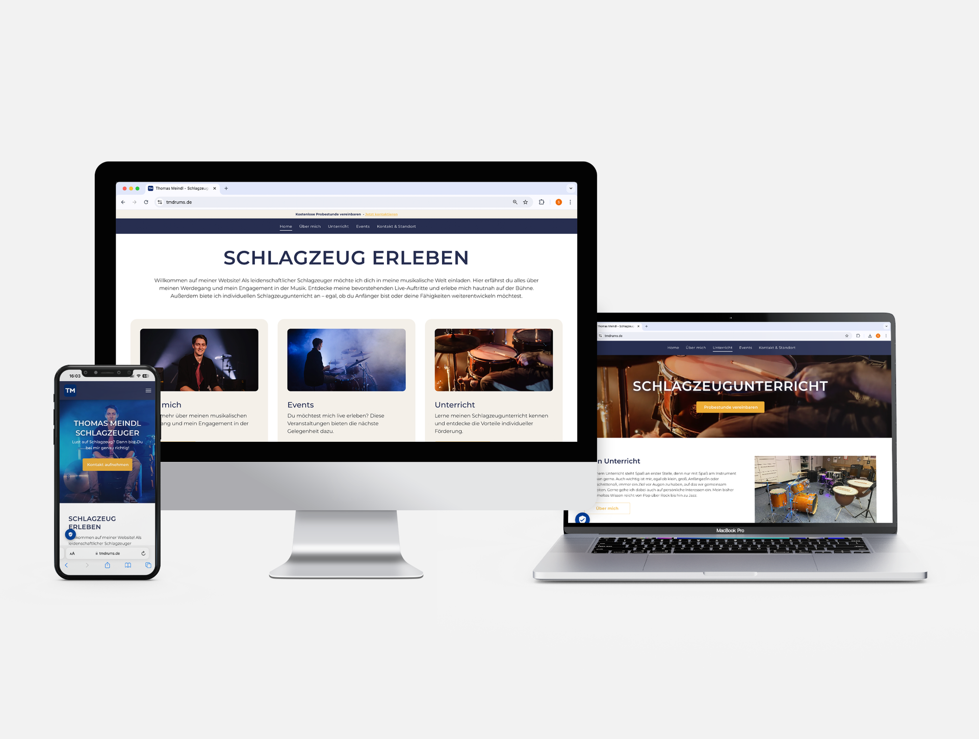 Die Webseite wurde entwickelt, um Thomas Meindl sowohl als talentierten Schlagzeuger als auch als engagierten Schlagzeuglehrer vorzustellen – mit einem Einblick in seinen beeindruckenden Werdegang sowie aktuellen und zukünftigen Auftritten.